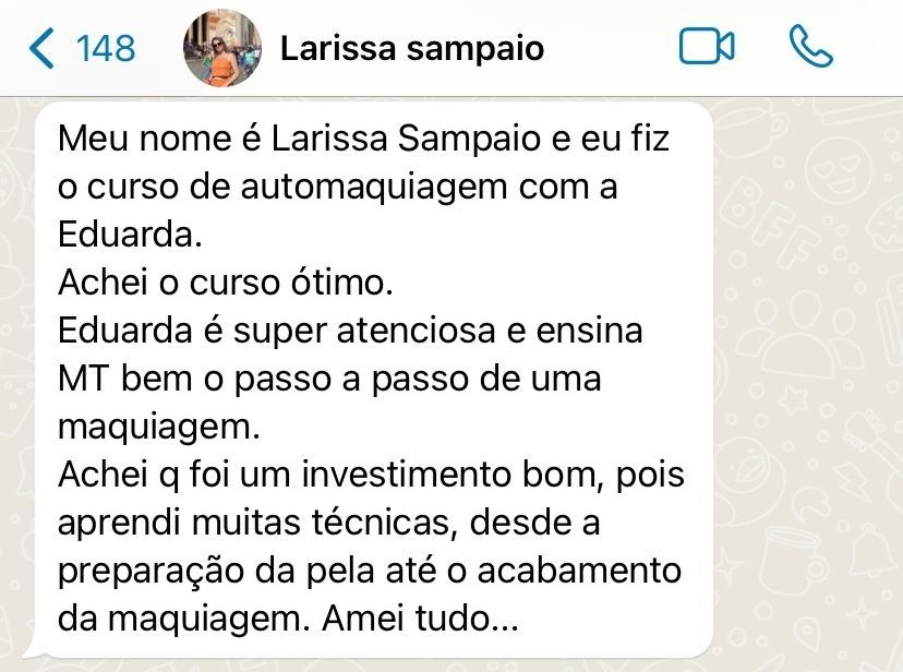 Possuo diversos cursos na área de maquiagem, além de formação a nível técnico em estética e especialização em lash lifting.